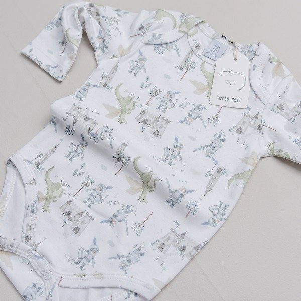 • Body manga larga: Con cuello americano y confeccionado en 100% algodón peinado estampado, de excelente calidad y súper cómodo para la delicada piel de tu bebé.