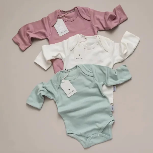 Descubrí el Tripack de bodys manguitas largas, la opción más práctica y versátil para el día a día de tu bebé. Confeccionados con cuellito americano para facilitar cada cambio, estos bodys son un esencial para los más pequeños, combinando comodidad, calidad y diseño.