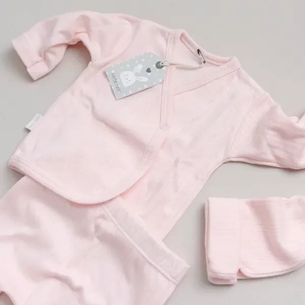 Descubrí el nuevo ajuarcito de 3 piezas en algodón pima desagujado, diseñado para brindar máxima calidad y máxima suavidad al primer contacto con la piel de tu bebé. Este set es ideal para el día del recibimiento y los primeros momentos, pensado cuidadosamente para acompañar el inicio de la vida con la mayor delicadeza.