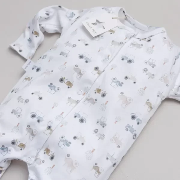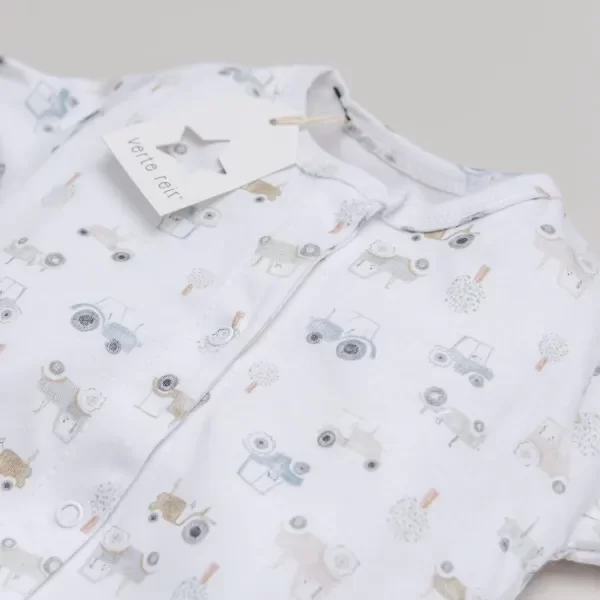 Lo diseñamos con una apertura total frontal, lo que facilita el cambio de ropa sin necesidad de manipular la cabecita de tu bebé. Tiene piecitos y ganchitos al tono, para que se vea aún más lindo.